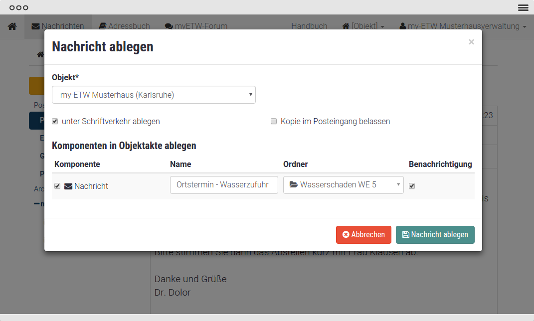 Damit können Sie auch mit Dritten (z.B. Behörden oder Handwerker) kommunizieren, ohne dass diese sich bei my-ETW anmelden müssen.