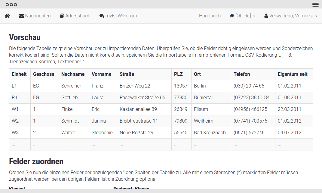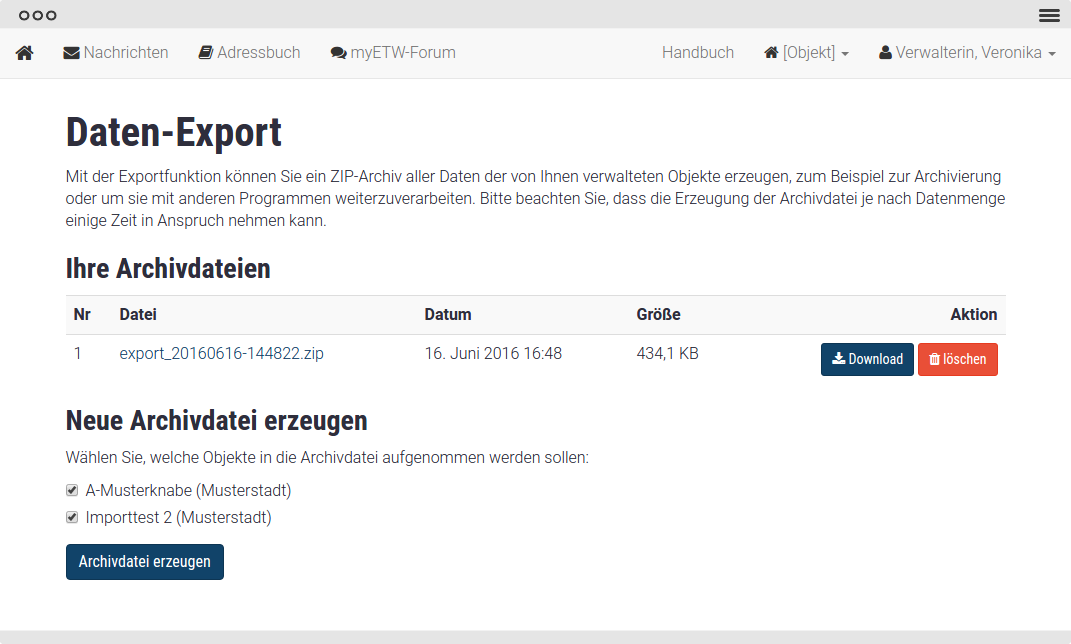 my-ETW verfügt über viele weitere Funktionen, die Verwaltern die tägliche Arbeit erleichtern, z.B.:
